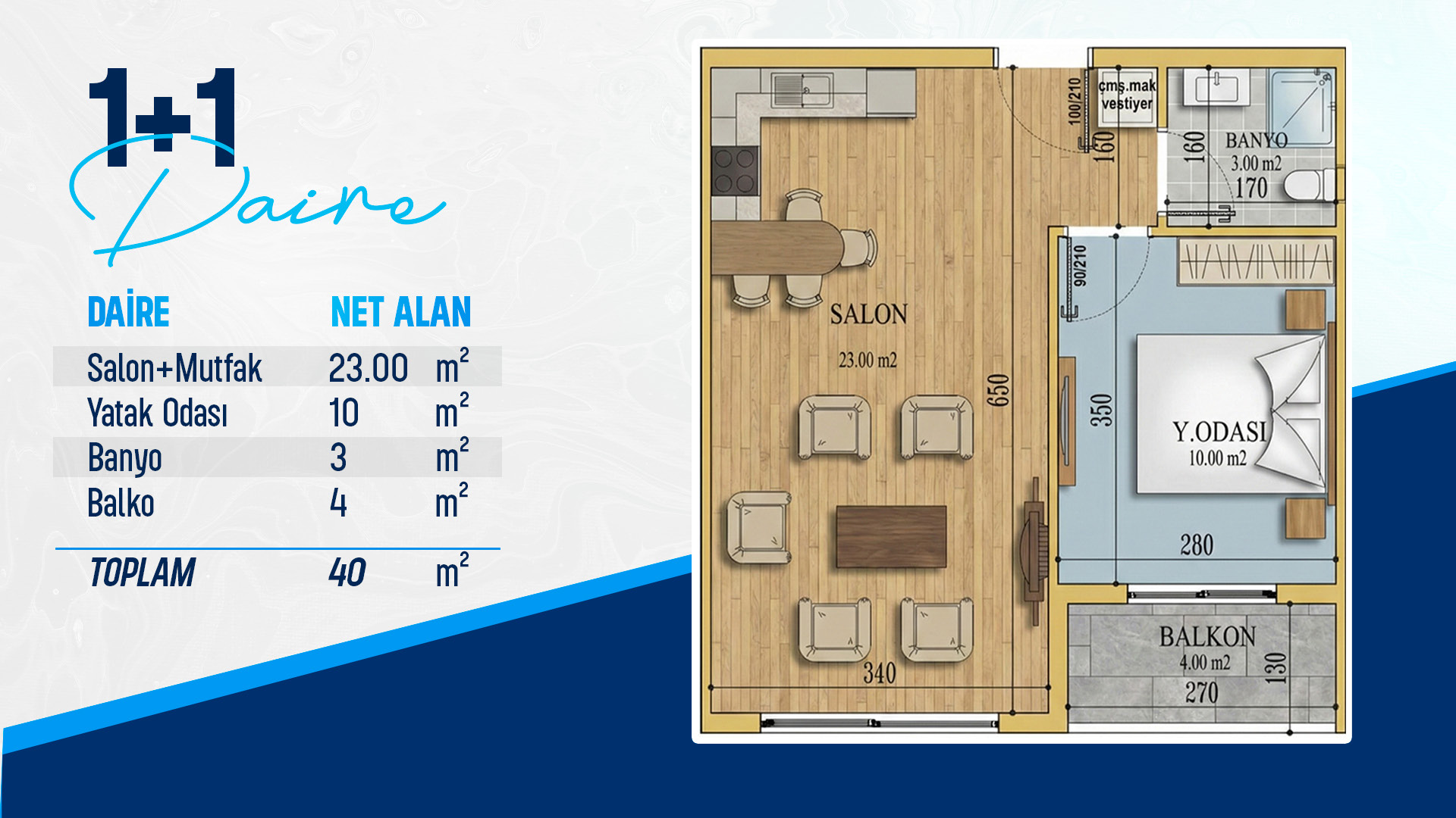 Modern ve fonksiyonel 1+1 dairelerimizde her metrekare verimlilik için tasarlandı.